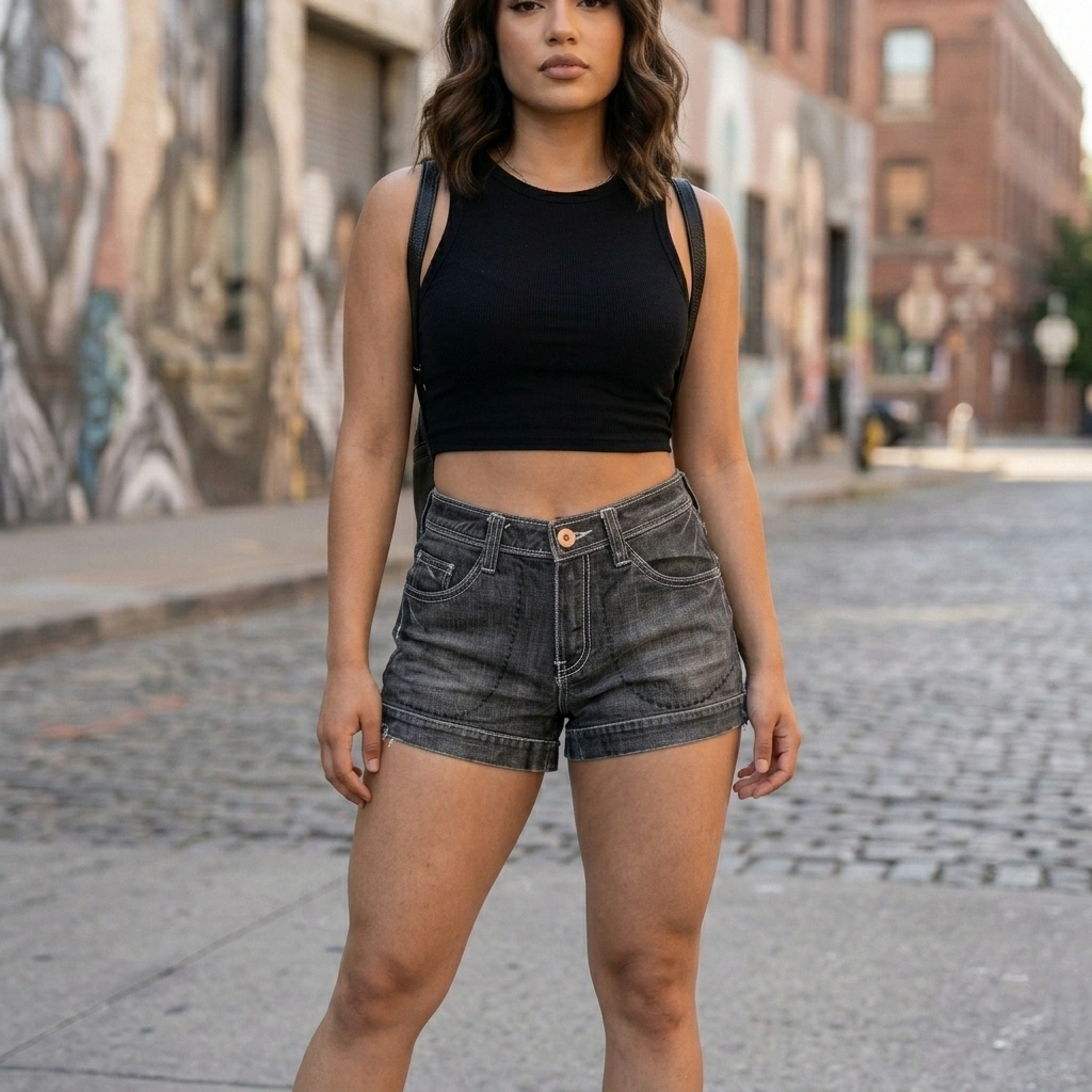 Gray Heart Patch Denim Shorts