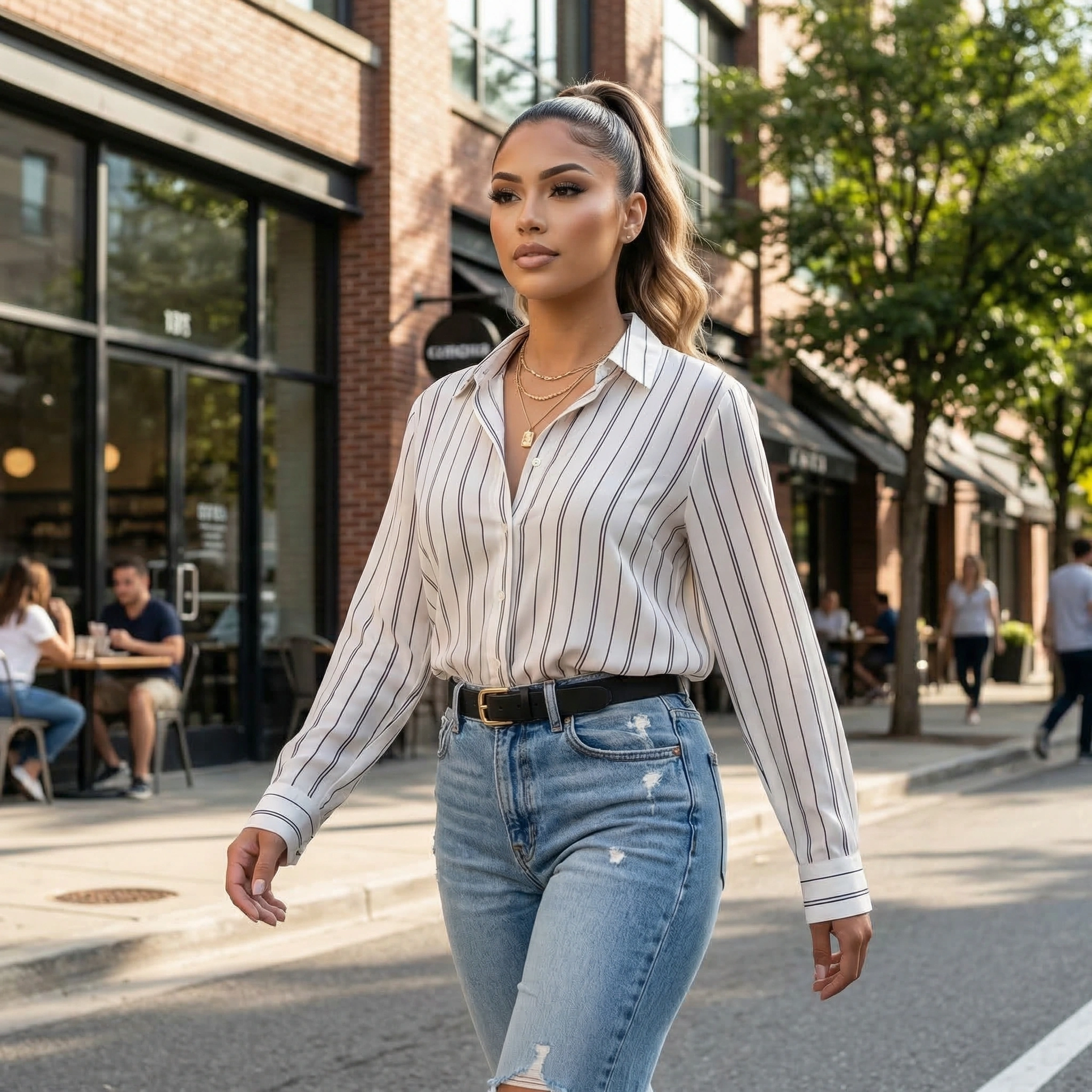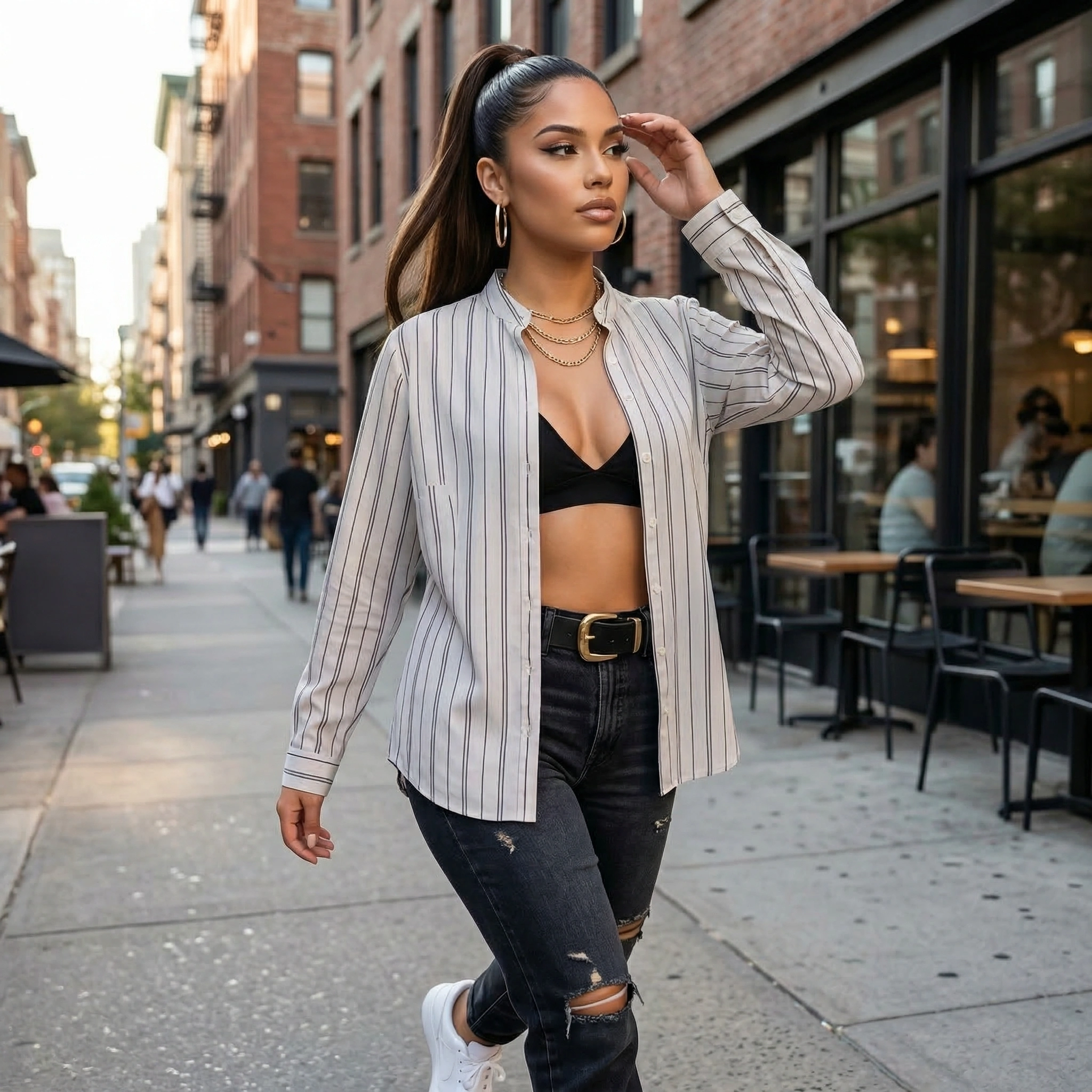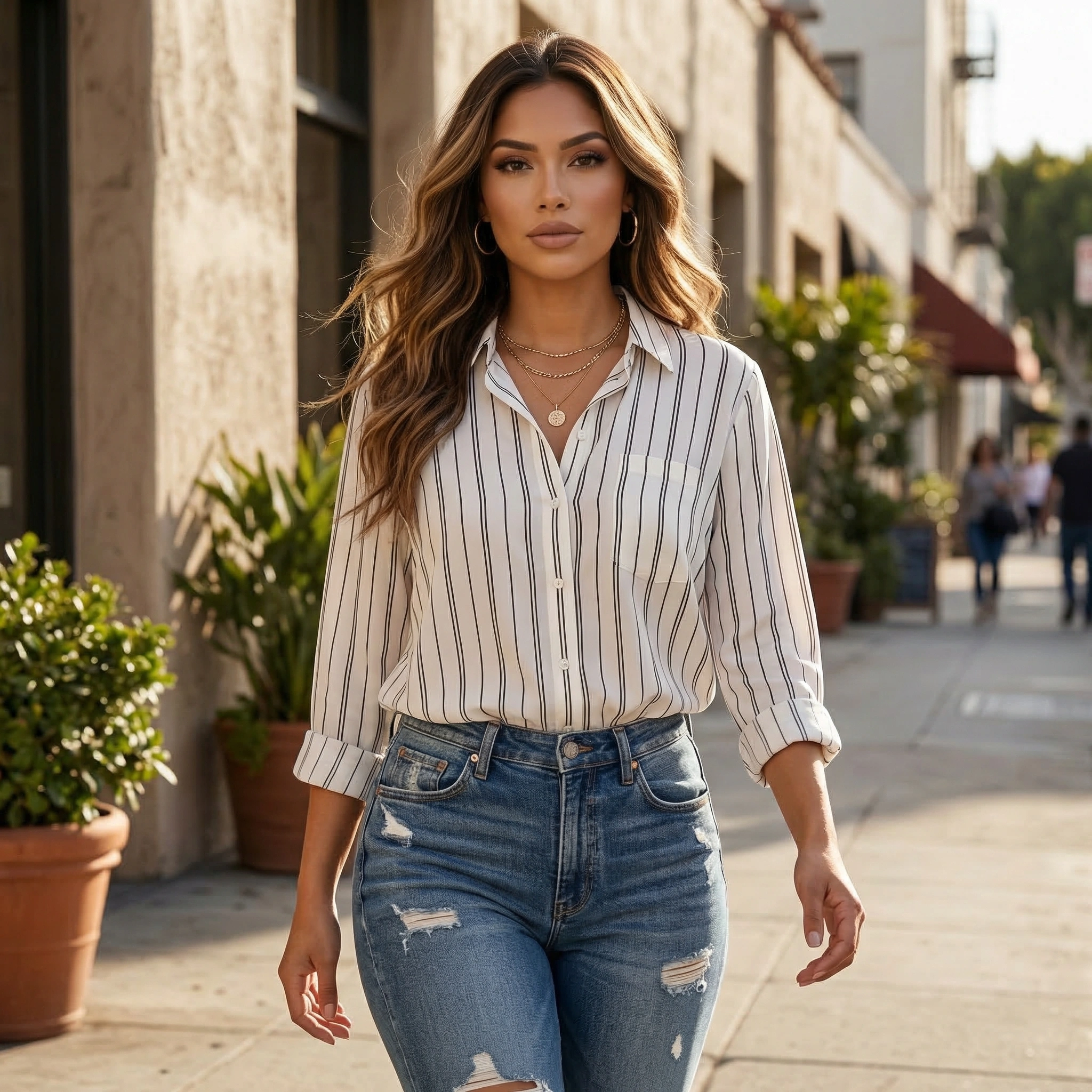 Soft, breathable fabric with a relaxed, effortless fit that looks amazing buttoned or worn open. Clean vertical stripes give you that chic, casual street style perfect for any day.