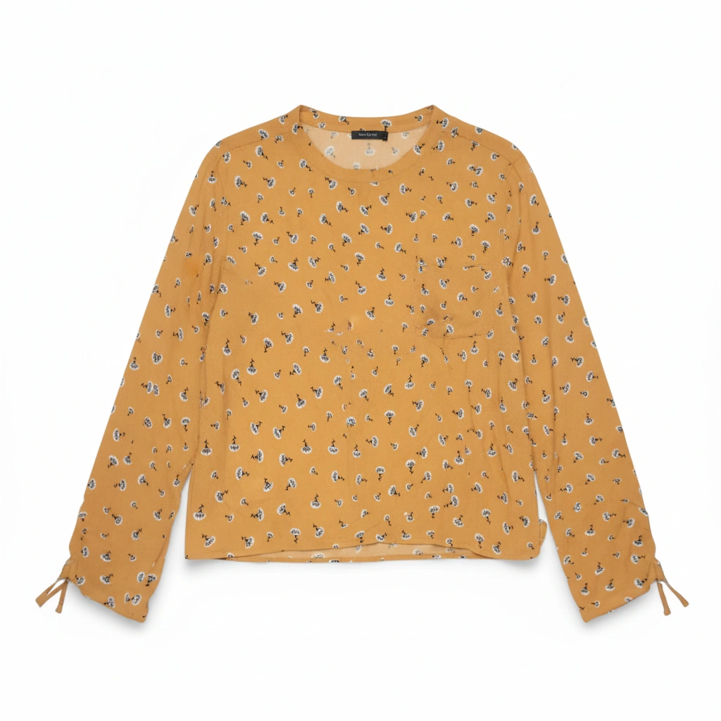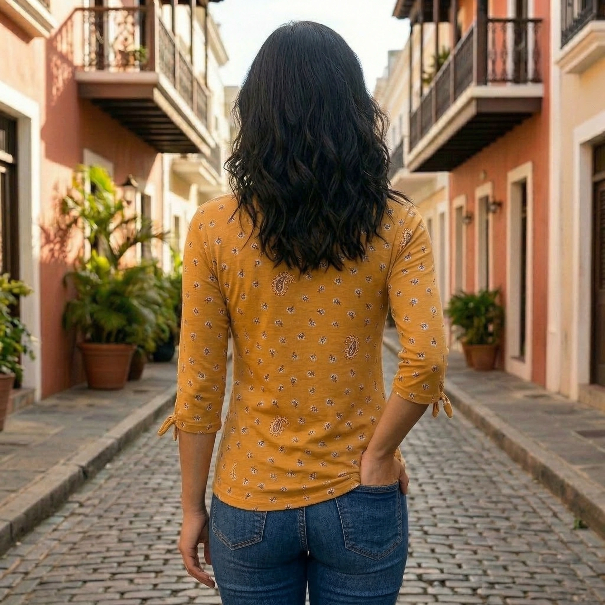 Mustard Paisley Tie-Sleeve Fitted Top